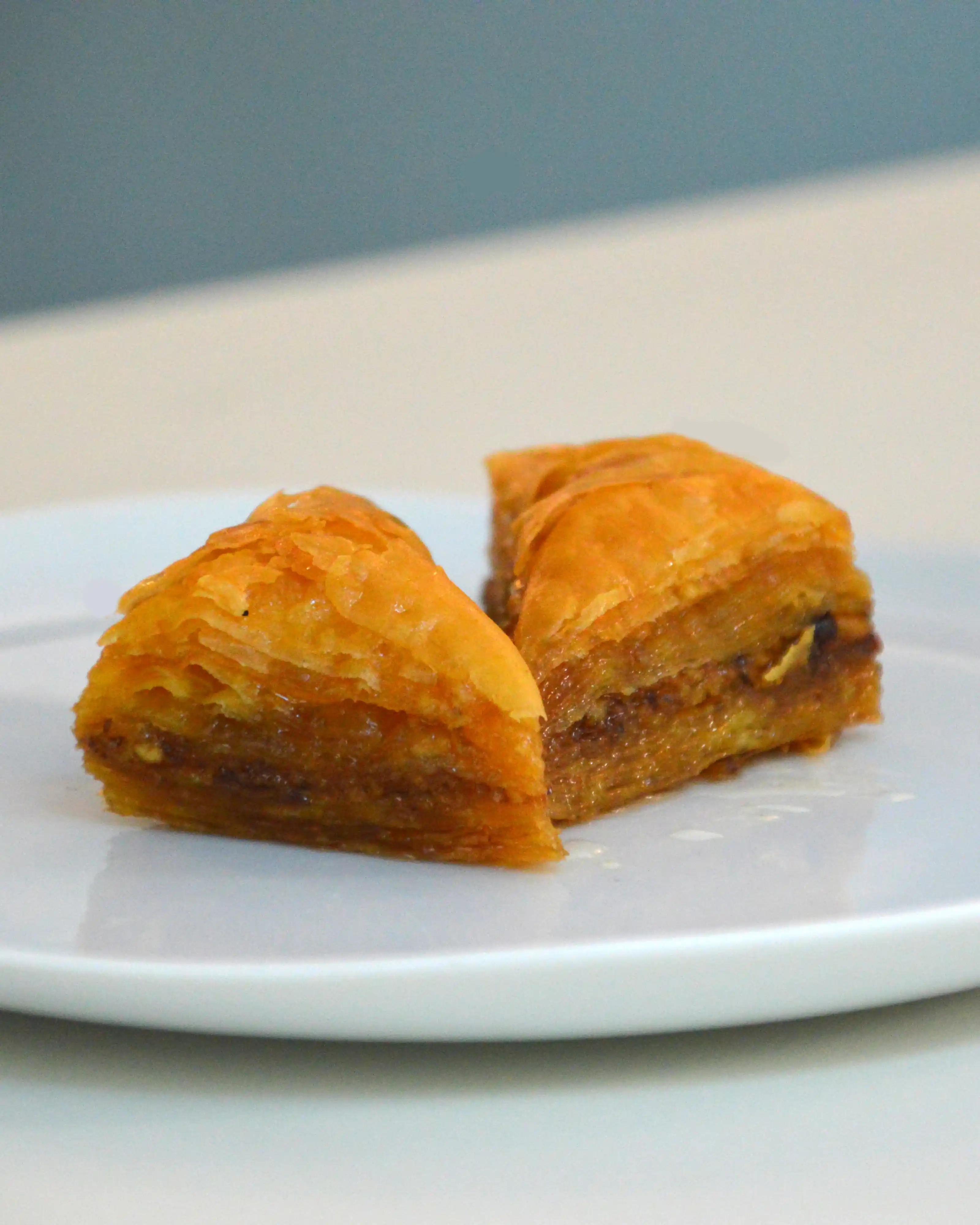 Capas de masa filo con nueces trituradas y miel