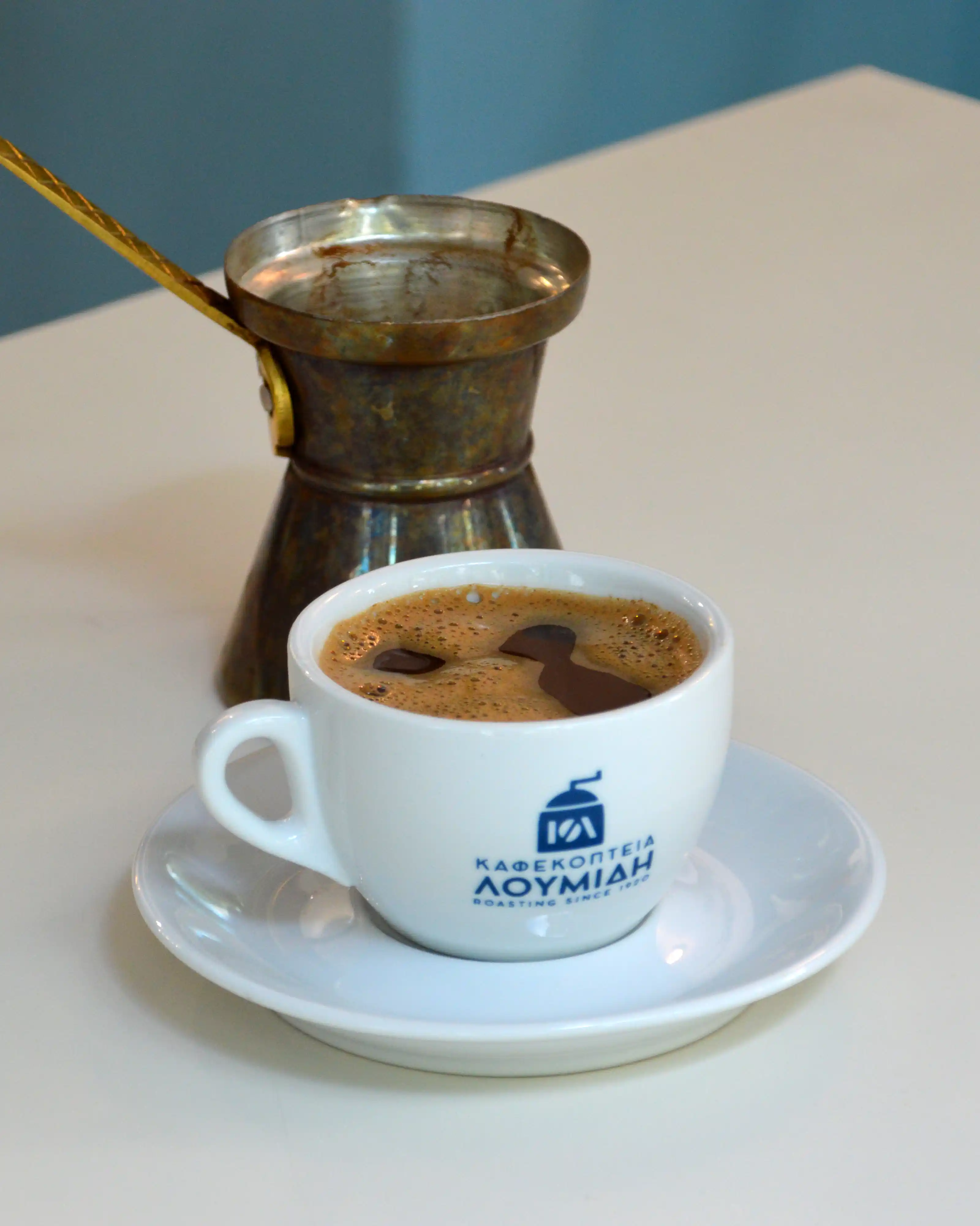 Café molido fino tradicional, hervido con agua y azúcar (opcional) en una olla especial llamada "briki"