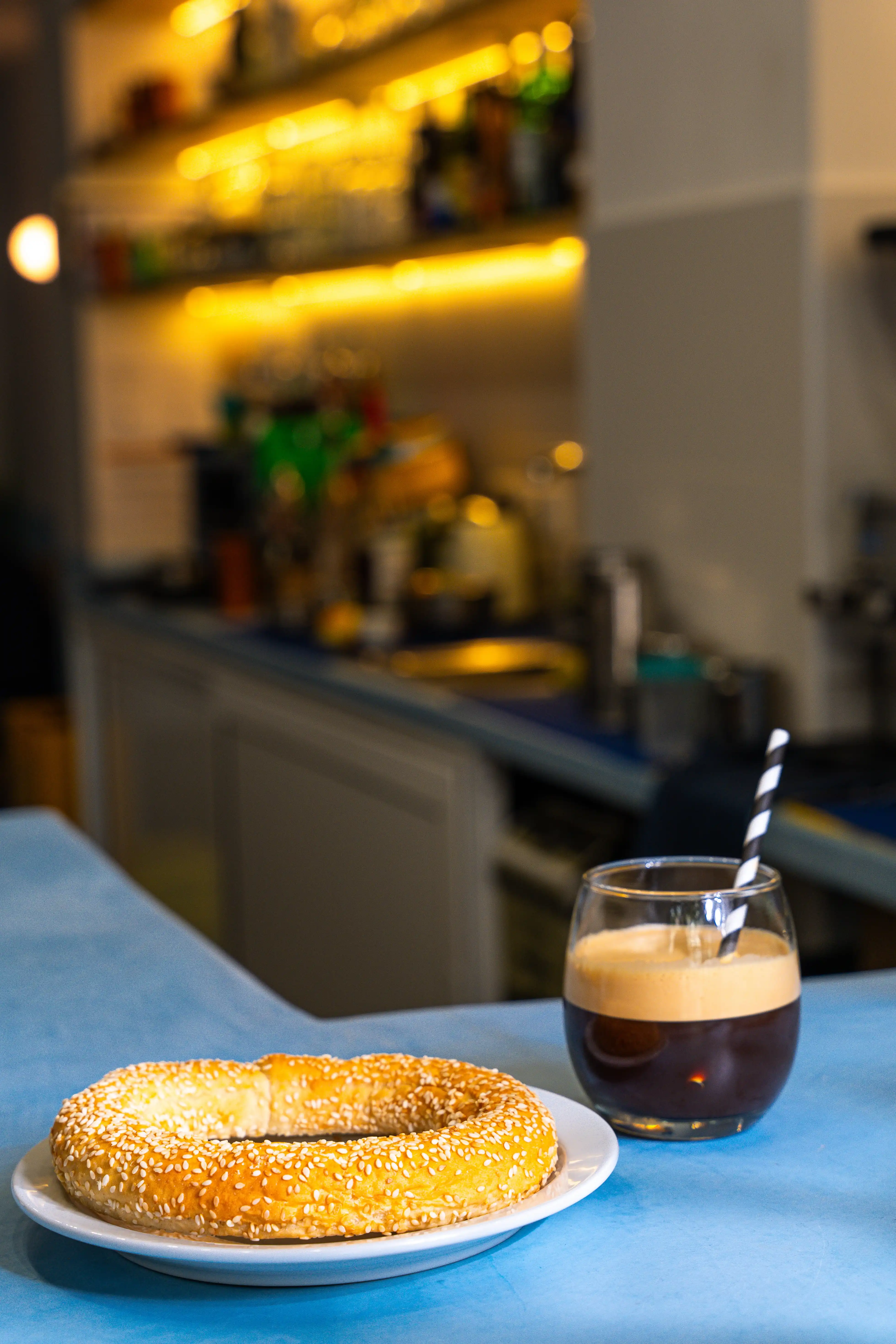 Pan griego crujiente circular con sésamo
